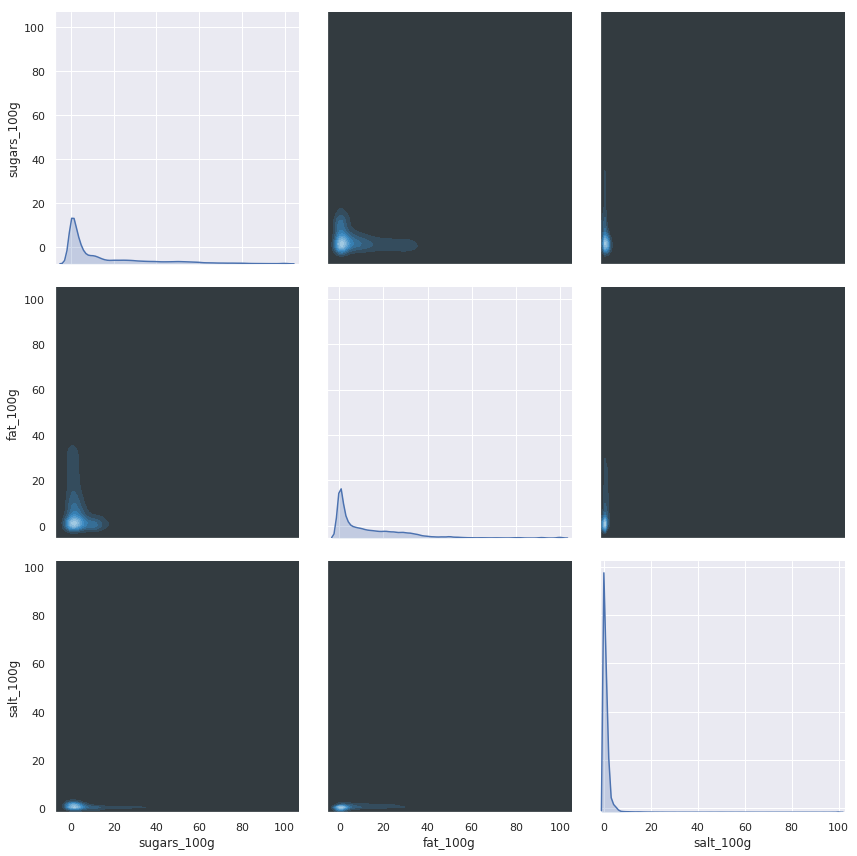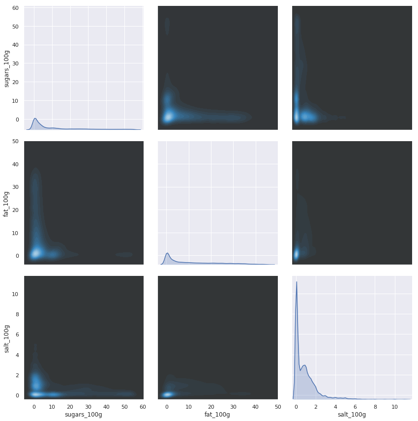 Density plot of sugar, salt and fat in products, generated from jupyter Notebook.