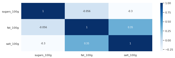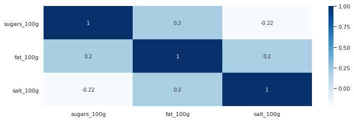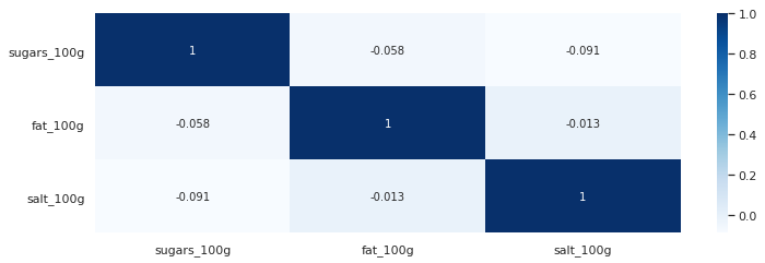 with an increase in one coming at the decrease of another. Meanwhile sugar and fat, fat and salt exhibit a weak positive relationship.